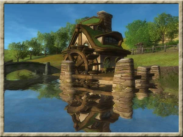 Die Alte Mühle war eine Korn- und Maismühle und wurde von einem großen Wasserrad angetrieben. Zuerst stand die Mühle direkt an der Brücke die über die Wässer führte und an die Mühle schloss sich der Mühlenhof an. Es wird berichtet, dass die Mühle, völlig untypisch für Hobbits, sogar einen Turm hatte.