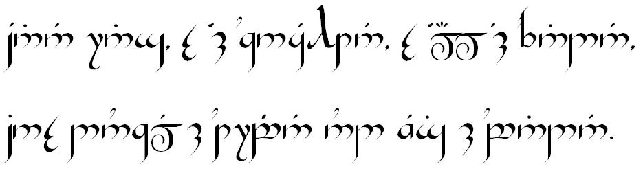 Tolkien übersetzte darüber hinaus die zwei Verszeilen, die die Ringinschrift bilden, in die Schwarze Sprache Mordors: