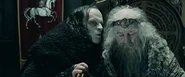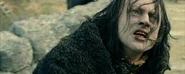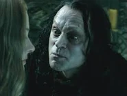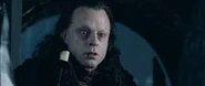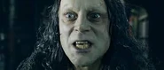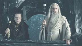 Dans les films, le mage frappe Gríma une fois de trop, et celui-ci le poignarde avant de se faire tuer par Legolas qui le transperce d'une flèche, car Gandalf comptait récupérer Saroumane pour qu'il se joigne à eux dans la lutte contre Sauron, ou tout du moins lui laisser la vie sauve sous la bonne garde des Ents.