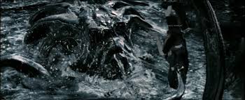 Elle y trouve un lac ou vit le Guetteur de l'Eau. Seule une petite île couverte de quelques arbustes émerge au milieu. Héra y jette une lance qui se met à bouger dans l'eau. L'ilot est en fait la tête du Guetteur. Quand le Mûmakil arrive au bord du lac, le Guetteur émerge du lac. Avec ses tentacules, il capture l'Oliphant et l'amenant vers sa bouche énorme, l’avale entièrement.