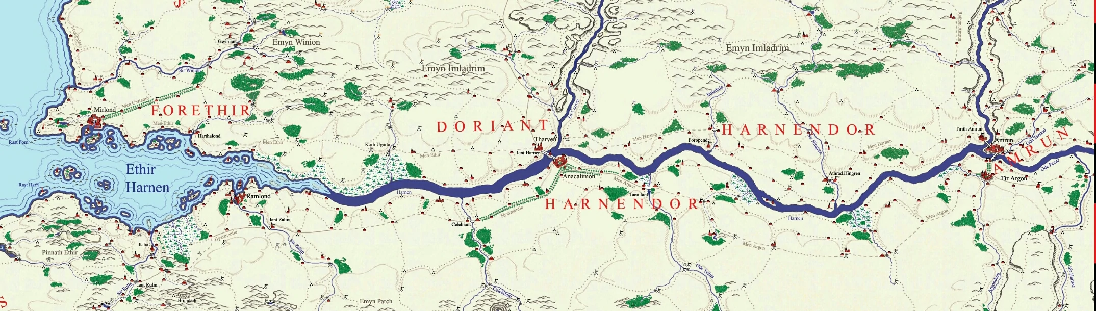 Le mot Harnen est l'équivalent sindarin de "Eau du Sud".[6]