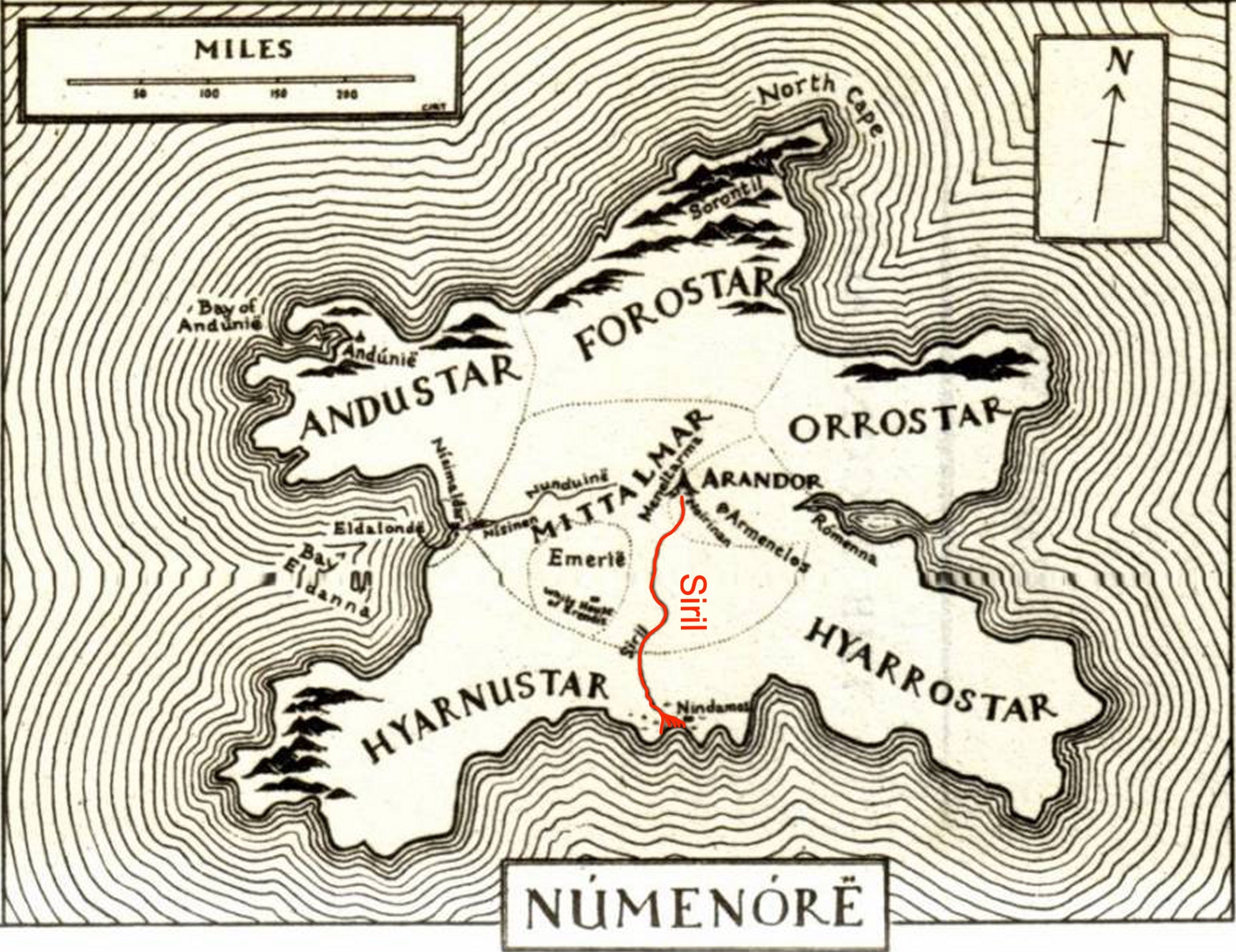 - ↑ J.R.R. Tolkien, Christopher Tolkien, Contes et Légendes inachevés, "[Carte de] Númenórë"