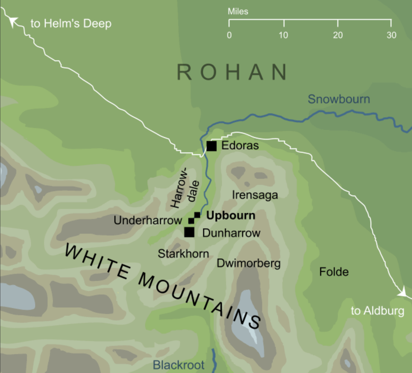Le 10 mars 3019, l'armée du Rohan, conduite par Théoden, partant en guerre pour secourir Minas Tirith, traverse sousharrow. De nombreuses femmes regardent leurs maris partir au combat d’un air triste derrière leurs portes sombres.[3]
