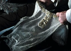 - "Signor Baggins!" gridò. "Ecco un primo pagamento della tua ricompensa! Togliti quella vecchia cotta che hai indosso!". Così dicendo mise addosso a Bilbo una piccola di maglia, forgiata tanto tempo prima per qualche giovane Principe degli Elfi. Era fatta di quell'argento-acciaio che gli Elfi chiamano mithril, ed era accompagnata da una cintura di perle e cristalli. (...) "Mi sento magnifico" pensò Bilbo "anche se immagino di avere un aspetto alquanto ridicolo. Chissà come riderebbero di me, a casa sulla Collina! Eppure vorrei tanto avere uno specchio a portata di mano!:""
