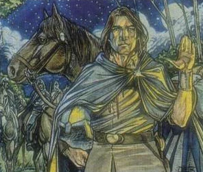 Raggiunse Aragorn l'8 Marzo, mentre questi accompagnava Théoden nel tragitto da Isengard al Fosso di Helm. Dopo una breve sosta nella fortezza lui e i suoi Uomini accompagnarono Aragorn, Legolas e Gimli a Dunclivo e da lì intrapresero il Sentiero dei Morti. Prima di entrare nella porta che conduceva al sentiero disse: "Questa è una porta maligna, e la mia morte sta al di là di essa. Oserò passare comunque...".