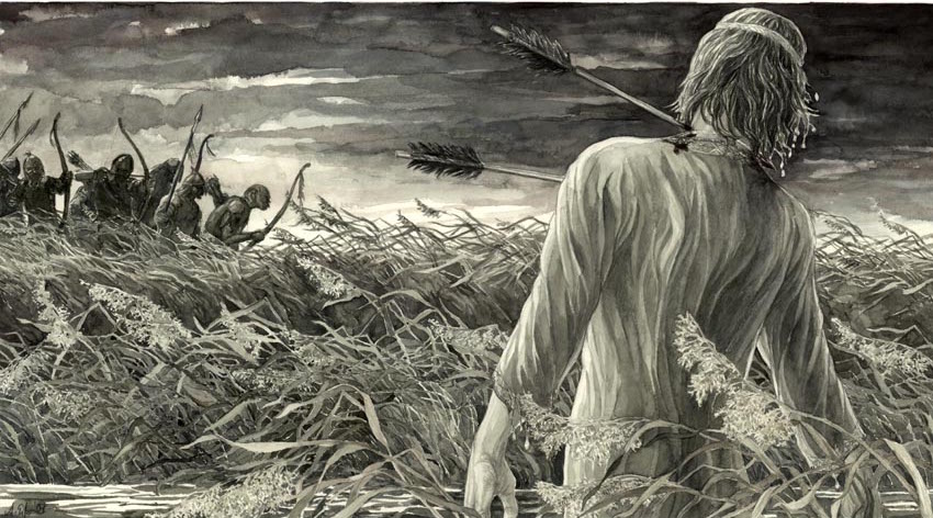 Isildur durante la sua impresa di salvare un frutto di Nimloth, in un'illustrazione