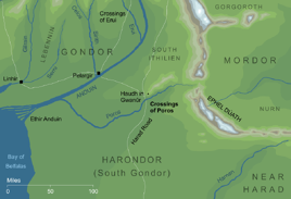 Il fiume nasce dalla catena degli Ephel Duath e percorre circa 200-300 miglia prima di gettarsi nel fiume Anduin. Praticamente al centro del suo corso si trovano i Guadi del Poros, importante punto di passaggio attraverso il quale passa la Strada Meridionale (Harad Road) che partendo da Osgiliath arriva fino a Umbar.