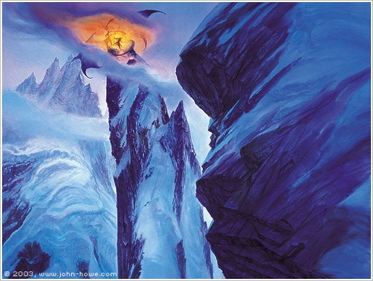 Gandalf e il Flagello di Durin combattono sulla cima del Celebdil, Ted Nasmith.