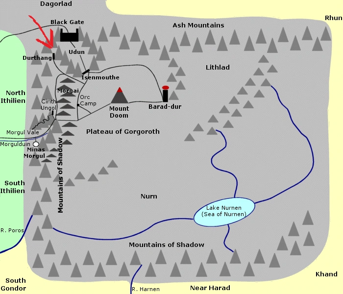 | Krainy i regiony | Gorgoroth • Udûn (Cirith Gorgor) • Lithlad • Imlad Morgul (Kręte Schody • Cirith Ungol • Torech Ungol) • Núrn |
