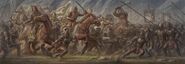 После поражения Сарумана Теоден поднял на войну как можно больше людей со всей страны, тем самым сумев создать внушительное конное войско, сыгравшее важную роль в Битве на Пеленнорских полях.
