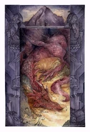 После смерти Смауга его тело осталось лежать на дне Долгого Озера, и хотя драгоценные камни из его шкуры продолжали сверкать, мало кто осмеливался их извлечь.