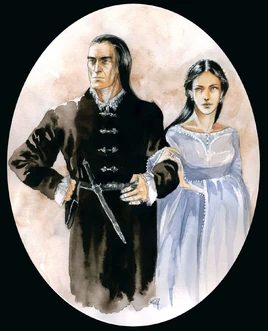 | Она была женщиной большой красоты и мягкого сердца, но через двенадцать лет она умерла. Дэнетор любил её по-своему и, ещё больше он любил старшего сына. Но людям казалось, что она увяла в крепости, как цветок из приморской долины, пересаженный на голую скалу. Тень востока наполняла её ужасом, и она поворачивала глаза к югу, к морю, которое она утратила. | ||