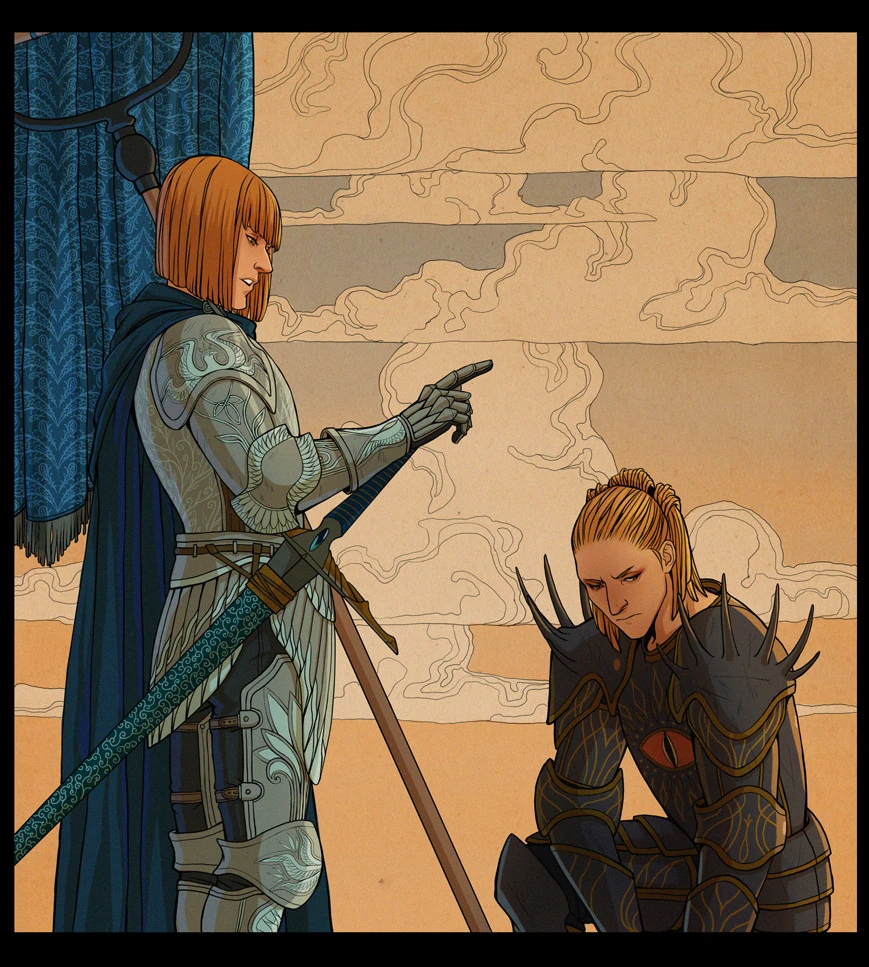 В Войне Гнева Моргот был побеждён и доставлен пленником в Аман, а оставшиеся у него Сильмарили были взяты на хранение Эонвэ. Майа Саурон, в ужасе от поражения Моргота, раскаялся и склонился перед Эонвэ, отказавшись от былых злодеяний. Эонвэ не мог судить себе подобных и повелел Саурону явиться на суд Валар. Тот испугался постыдного суда и жестокого наказания, потому, как только Эонвэ ушёл, скрылся в Средиземье.