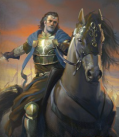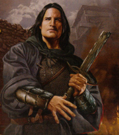 Aragorn II, son of Arathorn II and Gilraen, also known as Strider and Elessar, was the 16th and last Chieftain of the Dúnedain of the North; later crowned King Elessar Telcontar (March 1, 2931 - FO 120), the 26th King of Arnor, 35th King of Gondor and first High King of Gondor and Arnor since the short reign of Isildur. He was a great ranger and warrior, and bore, as Isildur's heir, the shards of Narsil, reforged and renamed Andúril ("Flame of the West") in the War of the Ring.
