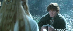 - Sam receives only a length of Elven-rope, Merry and Pippin receive Ñoldorin daggers, it implied that Arwen is Aragorn's gift (which doesn't make much sense) — not the Elfstone, although he is also given an Elven knife by Haldir, and Boromir is not shown to be given a gift.