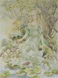 Goldberry in the Old Forest surrounded by a pool of water-lilies, by Sara Morello