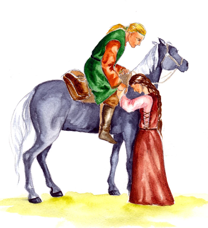 In about FA 470, Huor wedded Rían of the House of Bëor and conceived a son. He named the child Tuor even before birth and had to leave his home when called to the muster of King Fingon.