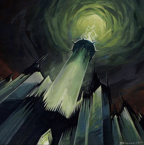 Pre-visualization concept of the beacon of Minas Morgul by Jeremy Bennett, for The Lord of the Rings: The Return of the King (2003), shown in Gary Russell's The Art of The Return of the King