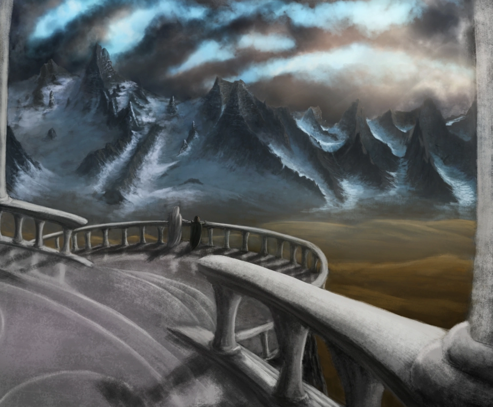 Gandalf and Pippin viewing Mordor from the city, soon before Sauron assaulted it - by Robert Zigo