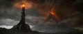 Orodruin erupting for the first time in many years, in The Rings of Power