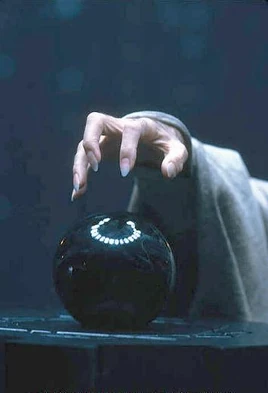Saruman making communication with Sauron in the late Third Age, by Jeremy Bennett; a concept piece for The Lord of the Rings: The Two Towers (2002)