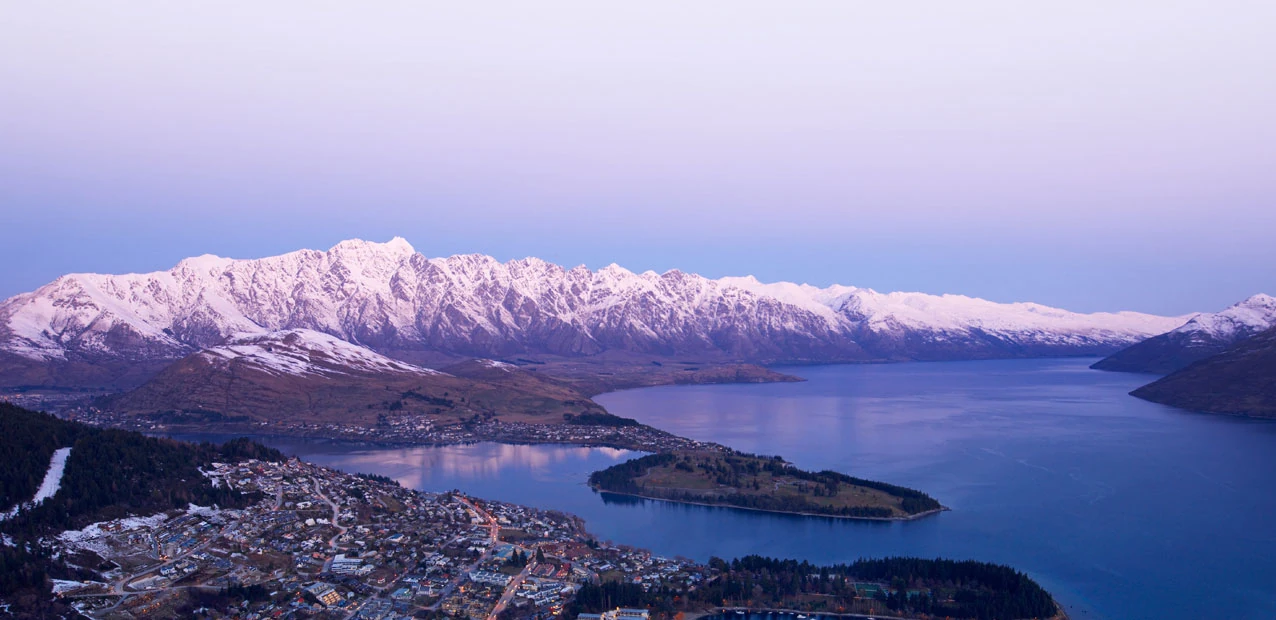 Queenstown is a well-known resort town on the South Island of New Zealand, and is well-known for its sunsets. It represented Rivendell in Peter Jackson's The Lord of the Rings and The Hobbit movies, as well as some parts of Lake-town in The Hobbit trilogy.