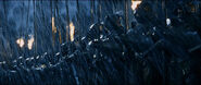 Many Uruk-hai in the host are shown using crossbows, which were not mentioned by Tolkien. The White Wizard also used Wargs that resemble hyenas more than wolves.