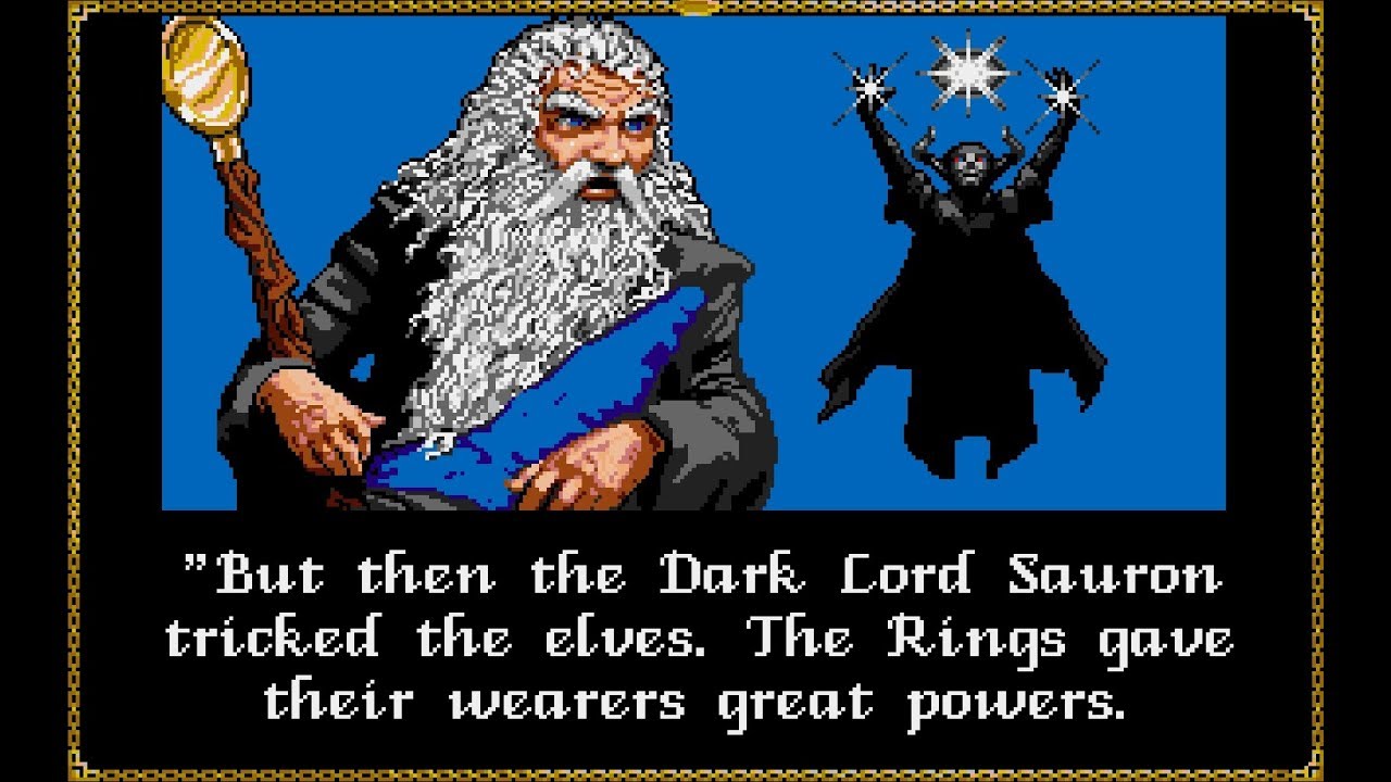 In The Lord of the Rings Online, Annatar was depicted in a mural in the ruins of Tham Mírdain. He was called Antheron ("Gift Lord"), because Turbine does not have the rights to the name Annatar. In the session play quest 'Daughter of Strife' from Volume I: Book XV, where the player takes on the character of Narmaleth, Sauron is also encountered in his disguise of Annatar (Antheron), at the time he taught the Elves of Eregion the secrets of the Rings. Visiting Sauron's personal chambers in Dol Guldur leads to a vision of the Dark Lord, still weak and recovering from his defeat at the hand of Isildur. During an extended flashback sequence to the War of the Last Alliance, Sauron himself is met within Barad-dûr by the player, who controls a historic character.