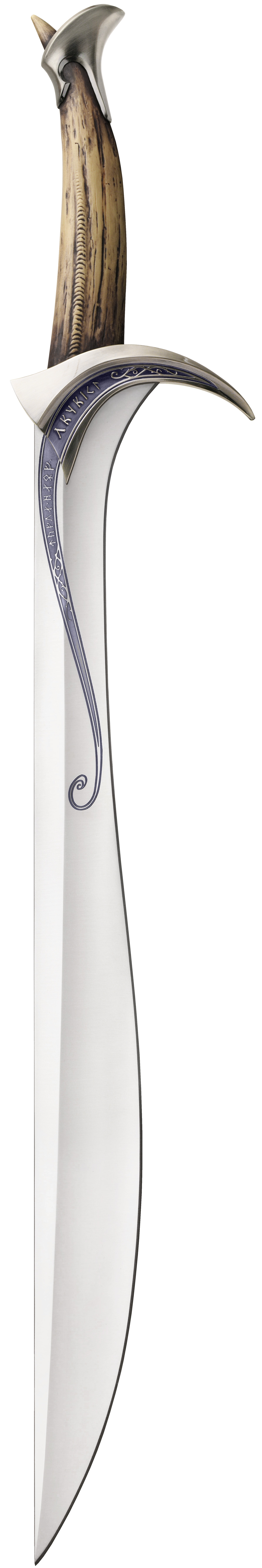 Later his daughter, Arwen, used Hadhafang when she aided Frodo in his escape from the Ringwraiths. Inscribed on the blade are Cirth (runes) in Sindarin that say, "Aen estar Hadhafang i chathol hen, thand arod dan i thang an i arwen." Which transfers to "this blade is called Hadhafang, a noble defense against the enemy throng for a noble lady." (In Sindarin "Arwen" actually means "noble (or royal) woman").